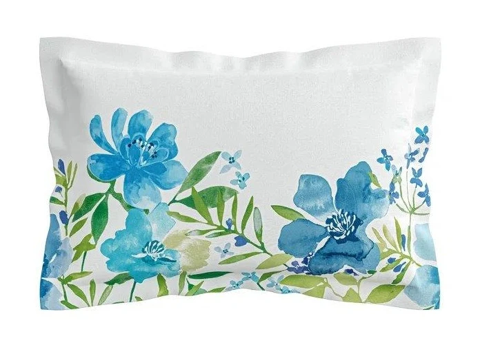 Beautiful watercolour florals are entwined in a panel and set against a fresh white cotton background.